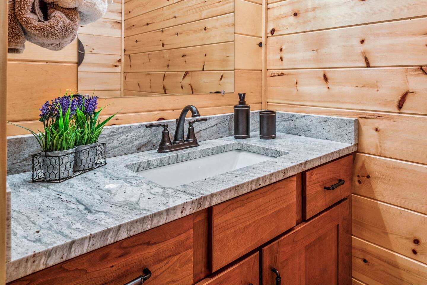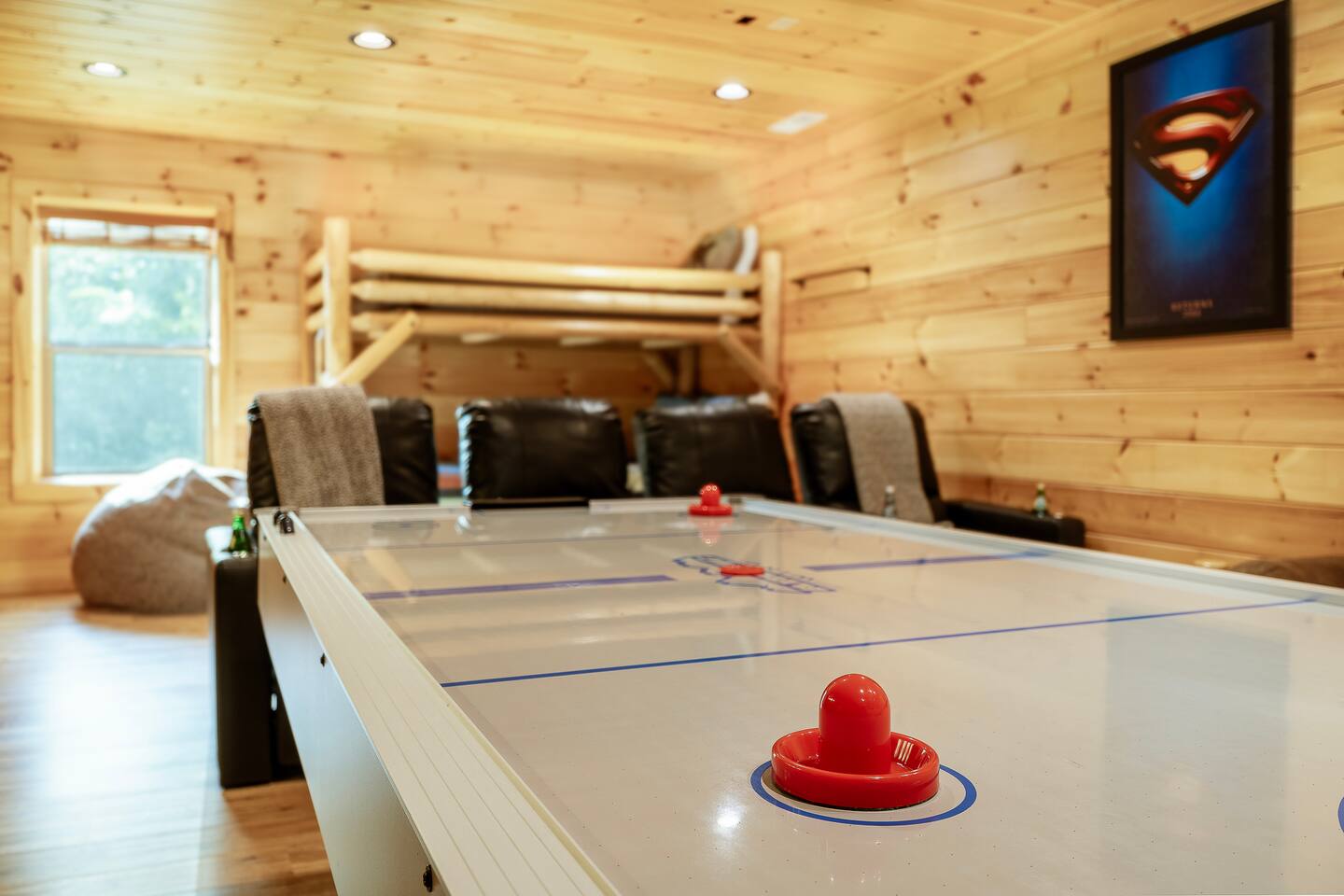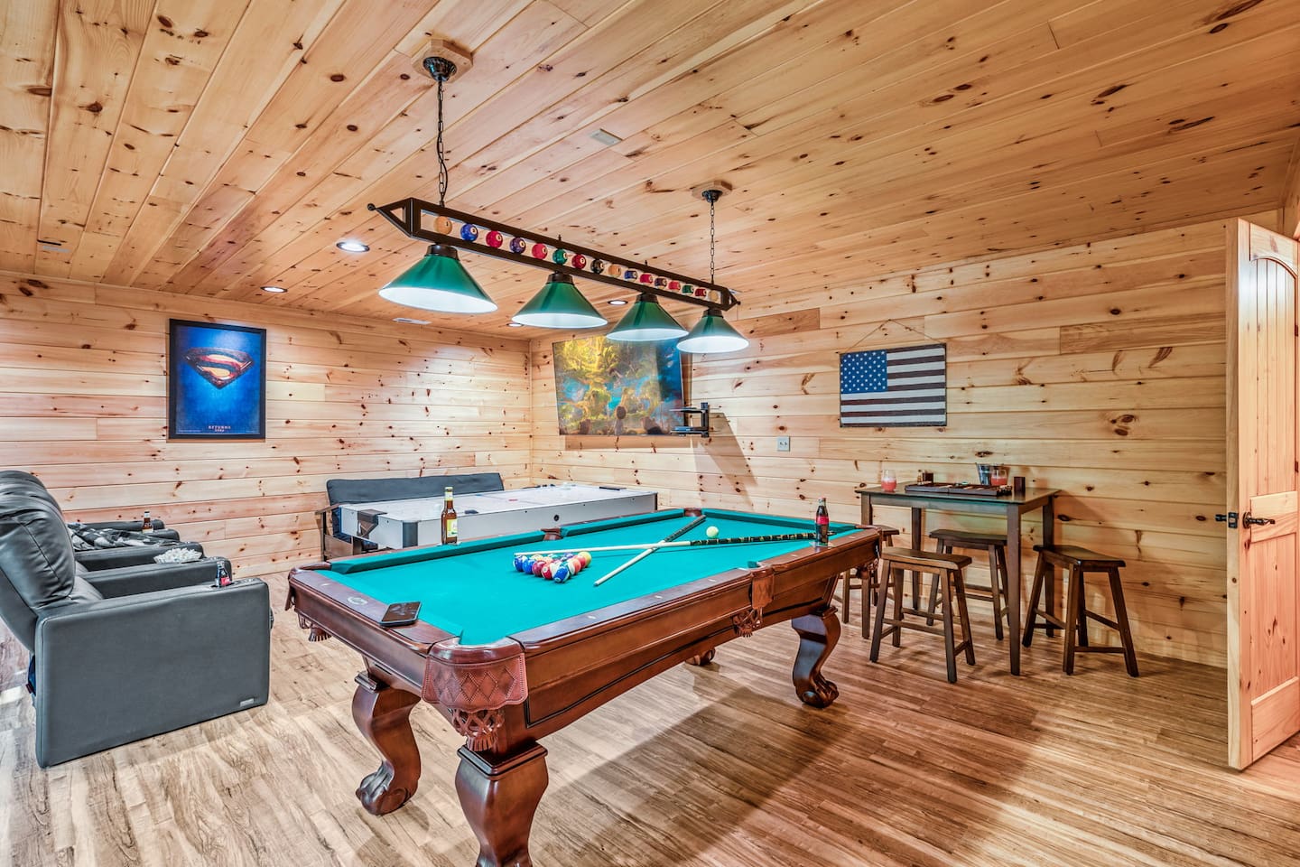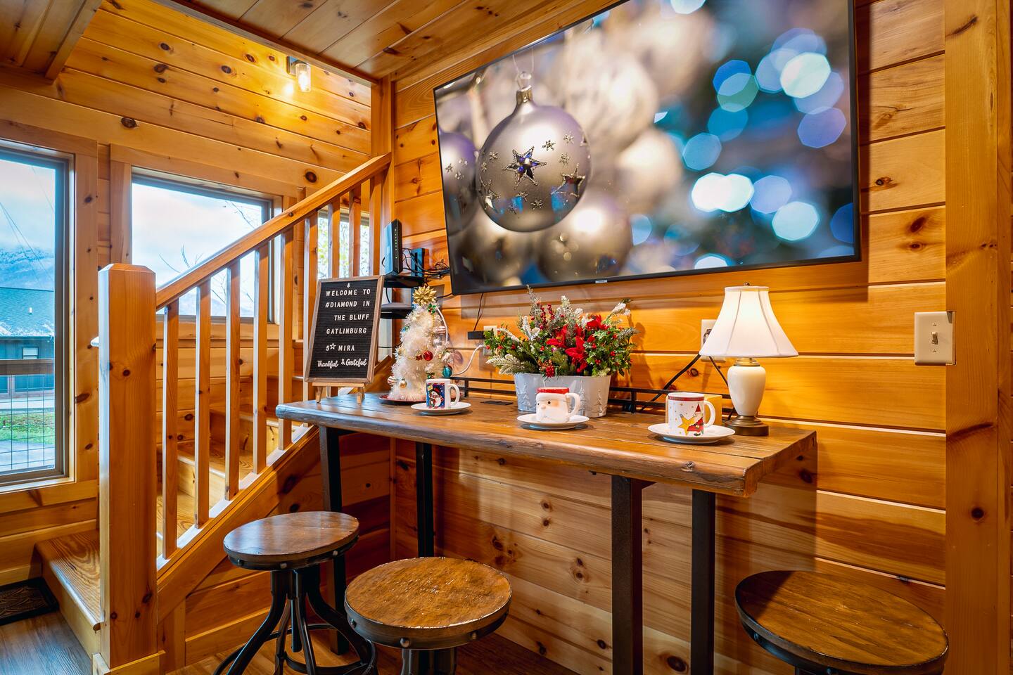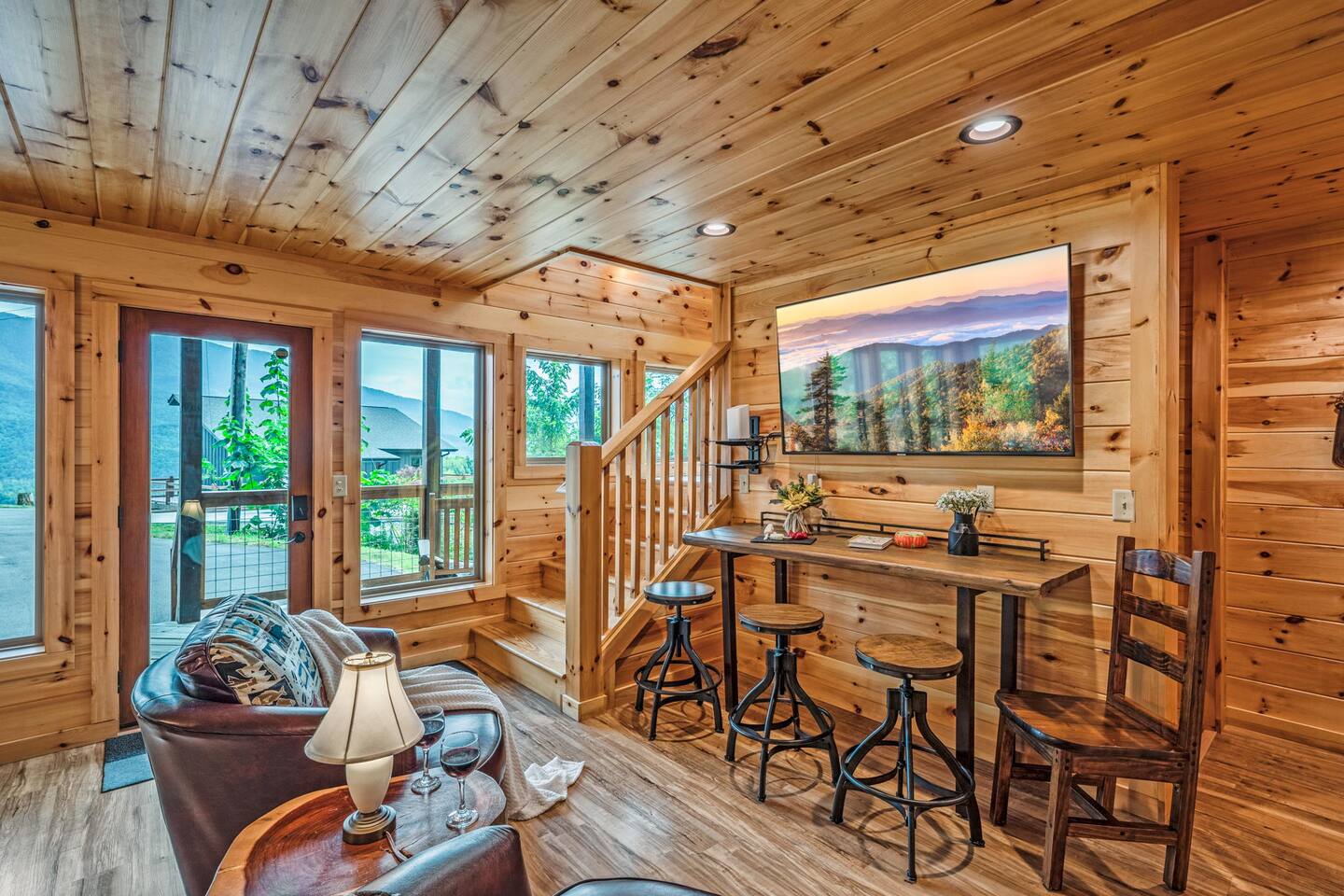 Elevate your Smokies getaway with family, friends & Fido @ Diamond In The Bluff-Gatlinburg. ⁜ 10 Human Max ⁜ Parking for 3 cars Max ⁜ 600+ Mbps WI-FI ⁜ Fully Equipped Kitchen with granite countertops and all stainless steel appliances ⁜ Electric Fireplace ⁜ Gas BBQ-Weber Grill ⁜ Game room-fully equipped with theater chairs, pool table, air-hockey table, backgammon set and much more ⁜ Hot tub for 6 people ⁜ Ramp on the side of the cabin and accessible entire main floor of the cabin