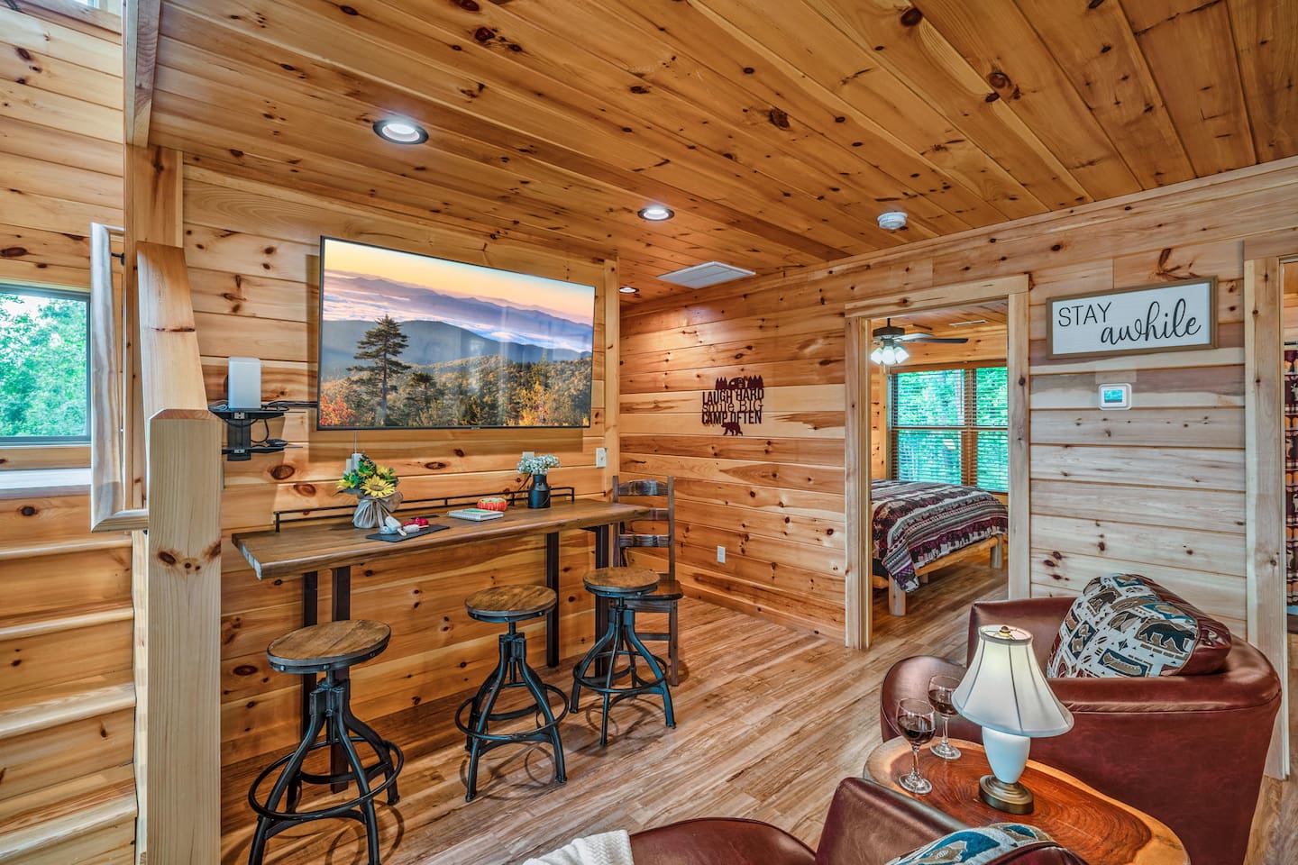 💎 Diamond in the Bluff: Your Smoky Mountain Getaway ♥ Please save our cabin by clicking on the heart in the upper right hand corner, this will help you find it again and share it with other people! Distance to the National Park Entrance: Only 17 Minutes! Views, Views, and More Views! Enjoy breathtaking panoramas of Mt. LeConte from the cabin and both decks. Welcome to Diamond in the Bluff 💎 a stunning and spacious cabin designed for relaxation, fun, and unforgettable memories. With panoramic mountain views and luxurious amenities, this is your perfect home base for exploring the Smoky Mountains. What Makes our Cabin Special? ⛰️ Spectacular Scenery: Enjoy lush greenery in summer, vibrant fall colors, snowcapped peaks in winter, and blooming flowers in spring. 😎 Relaxation Ready: Soak in the massaging hot tub, sip your morning coffee in the rocking chairs, or unwind on the deck with your favorite drink. 💦 Resort Perks: Access to three outdoor pools (seasonal, Memorial Day–Labor Day) and new pickleball and basketball courts for added fun. ⛳️ Convenience: Bent Creek Golf Village is located at the entrance to our community. Cabin Amenities Spacious Living: Open concept with a wall of windows framing stunning mountain views. Comfortable Sleeping Arrangements: - King-size bedrooms with en-suite bathrooms. -Kid-friendly amenities: baby gate, high chair, Pack 'n Play. -Fully Equipped Kitchen: State-of-the-art appliances and everything you need to cook and serve family meals. -Entertainment: Smart TVs in every bedroom, Blu-ray/DVD player, and high-speed Wi-Fi. -Extras: Washer/dryer, rocking chairs, propane BBQ grill, and quality linens and towels for a memorable stay. Guest Details -Check-In: Standard at 4 PM. Early check-in at 1 PM available for $125 (if scheduling permits). -Pets: Well-behaved, house-trained dogs are welcome (no cats). $150 non-refundable fee per pet. Guests must clean up after pets and crate them if left alone. No pets on furniture, please. Unregistered pets incur a $300 fee and reservation termination. -Fireplace Use: Operational October 1–April 1 only. Never leave unattended. -Guest Limit: Only registered guests are permitted on the property. Important Notes Quiet Hours: 10 PM–7 AM. Please respect the neighbors. Outdoor Safety: Do not leave children or pets unattended. No Smoking Indoors: Evidence of smoking indoors will result in a $500 fee. Smoke outdoors only, at least 10 feet from doors/windows. Hot Tub Rules: Must be 18+ to use. Max capacity: 6 people. No glass or added substances (e.g., soaps, oils). Replace the cover when not in use and strap securely. Camera Policy: Exterior cameras are for your protection. Tampering with cameras will result in reservation termination without a refund. Guest Access Check-in details will be provided a few days before arrival. We are owner-operated and committed to making your stay seamless and enjoyable. Plan Your Adventure Whether you’re enjoying the great outdoors, unwinding in the hot tub, or exploring nearby attractions, Diamond in the Bluff offers something for everyone. If your dates are unavailable, check out our sister property, Country Zen Villa with a fully fenced yard and wraparound deck. Book now and let the magic of the Smoky Mountains create memories you’ll cherish forever. Any of the activities below sound fun? Like the cabin? 🚨 Book now before someone else snags it! 🚴♂️ 1. Bike Through Cades Cove Of all the things to do around Gatlinburg, the most popular is a visit to Cades Cove. This beautiful little mountain valley is tucked in the foothills of the Appalachian Mountains and was once a thriving community. A number of rustic log cabins, cantilever barns, and grist mills are still preserved which gives Cades Cove a quaint air of times past. An 11-mile one-way loop runs through Cades Cove allowing you to tour it by car, bicycle, or on foot. Because Cades Cove is so popular, you can expect there to be lots of traffic during the summer months and in the fall when the leaves are changing color around Gatlinburg. The best way to see Cades Cove is, without a doubt, by bicycle. The Cades Cove loop road allows only bicycles (and foot traffic) before 10:00am on Saturday mornings and Wednesday mornings from May to September. 🚗 2. Drive to Newfound Gap Another popular activity in Gatlinburg is to drive through the national park to Newfound Gap, which is split between Tennessee in North Carolina. While there, you can stand with one foot on each side of the Tennessee-North Carolina state line. The mountain pass sits at an elevation of 5,046 feet so you’ll have fabulous views of the foothills below. The Appalachian Trail also runs right through Newfound Gap, so if you have ever dreamed of hiking part of the AT, now is your opportunity. If you start hiking northeast on the Appalachian Trail you’ll reach Charles Bunion in ~4 miles. Or if you head southwest on the AT for 7.5 miles, you’ll reach Clingman’s Dome, the highest point in the state of Tennessee. ⛰️ 3. See the View from Clingman’s Dome From Newfound Gap you can continue heading up the windy mountain road to Clingman’s Dome. At 6,643 feet, Clingman’s Dome is the highest point in Tennessee and the third highest mountain east of the Mississippi River. From the Clingman’s Dome parking lot, it’s a half-mile walk on a paved trail to the top of the mountain where a long spiraling concrete ramp leads up to an observation deck from which you can enjoy the spectacular views. On a clear day, you can enjoy up to 100 miles of visibility from the top of Clingman’s Dome. The 23-mile drive to Clingman’s Dome from downtown Gatlinburg can take over an hour with traffic so make sure you plan accordingly. There is also limited parking at the top. It’s best to arrive early in the day so you’re not stuck waiting for a parking spot. Clingman’s Dome Winter Road Closure: The final 7-mile stretch of road to Clingman’s Dome is